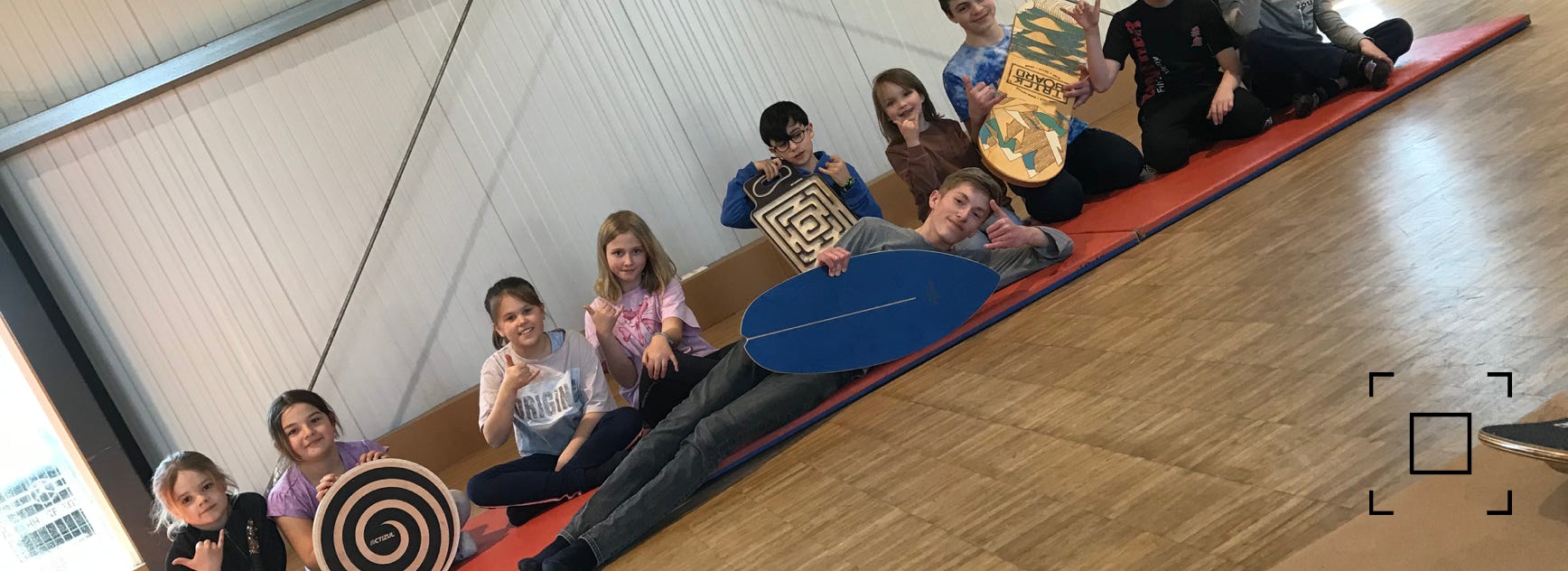 Tristan kann Euch mit diesen hochwertigen Sportgeräten auch zeigen, wie man sich dreht, mit dem Brett oder durch Sprung; wie man in die Hocke geht, drauf springt, auf dem Brett jongliert oder andere schöne Übungen für Koordination und Balance.